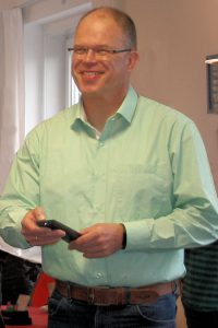 Olaf Seiler, Pressereferent der Sparkasse Elmshorn, schaltet den von der Sparkassse gespendeten LED-Monitor ein. Und er funktionierte auch zu seiner Freude. Das anschließende Jubiläumsturnier, das tatsächlich bis weit nach Mitternacht in den Mai gespielt und gefeiert wurde, war eine rundum tolle Veranstaltung. Die 24 Spielpaare waren begeistert, und zu recht erhielt die Organisatorin, Sportwartin Inge Fuhrmann, den verdienten Beifall. Zur Seite standen ihr Marianne Frederiksen und Brigitte Saß, sowie Ingrid Henning und Bea Kohnert-Koller. Dass viele andere dankenswerterweise bei den nächtlichen Abräumarbeiten mithalfen, soll nicht unerwähnt bleiben.