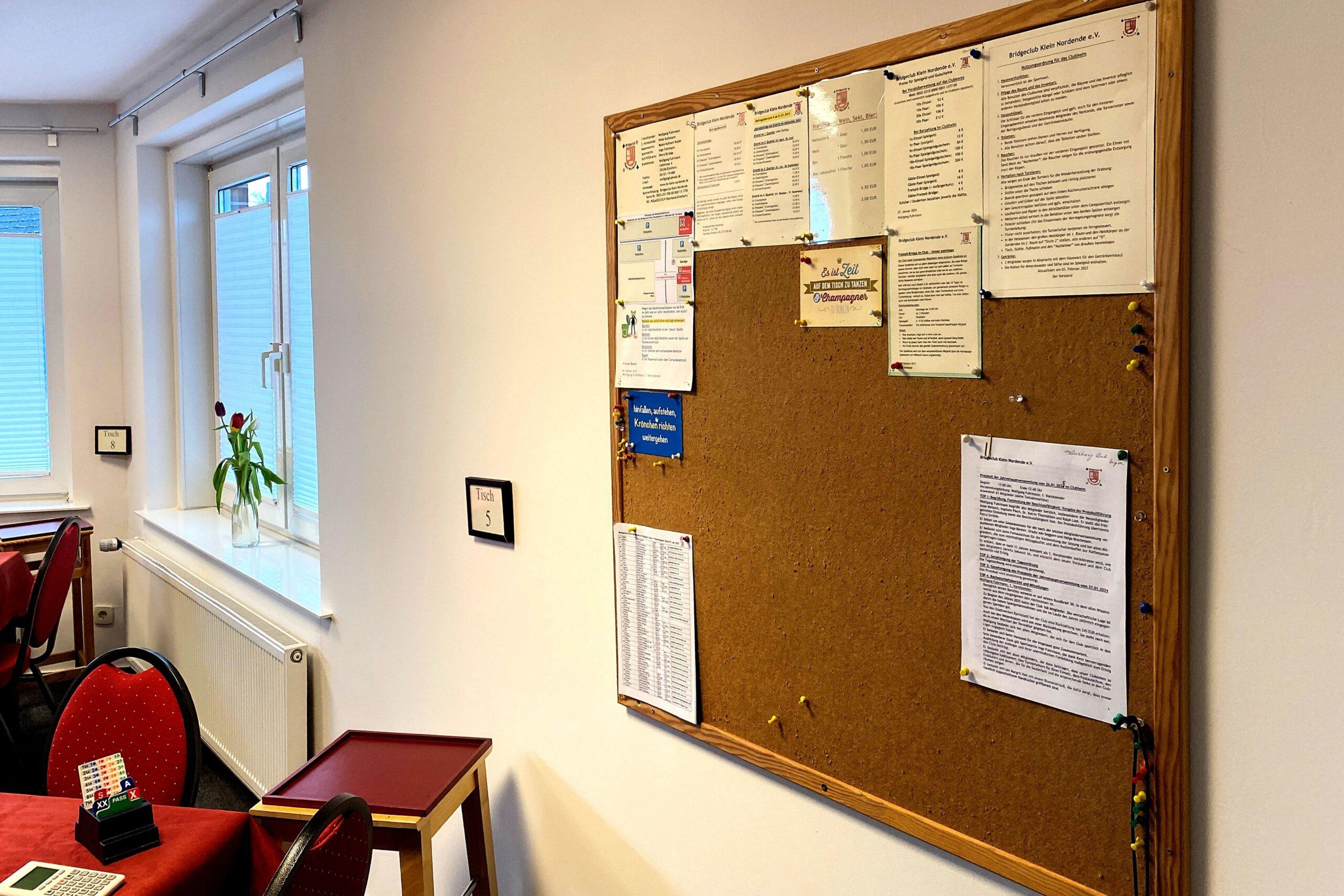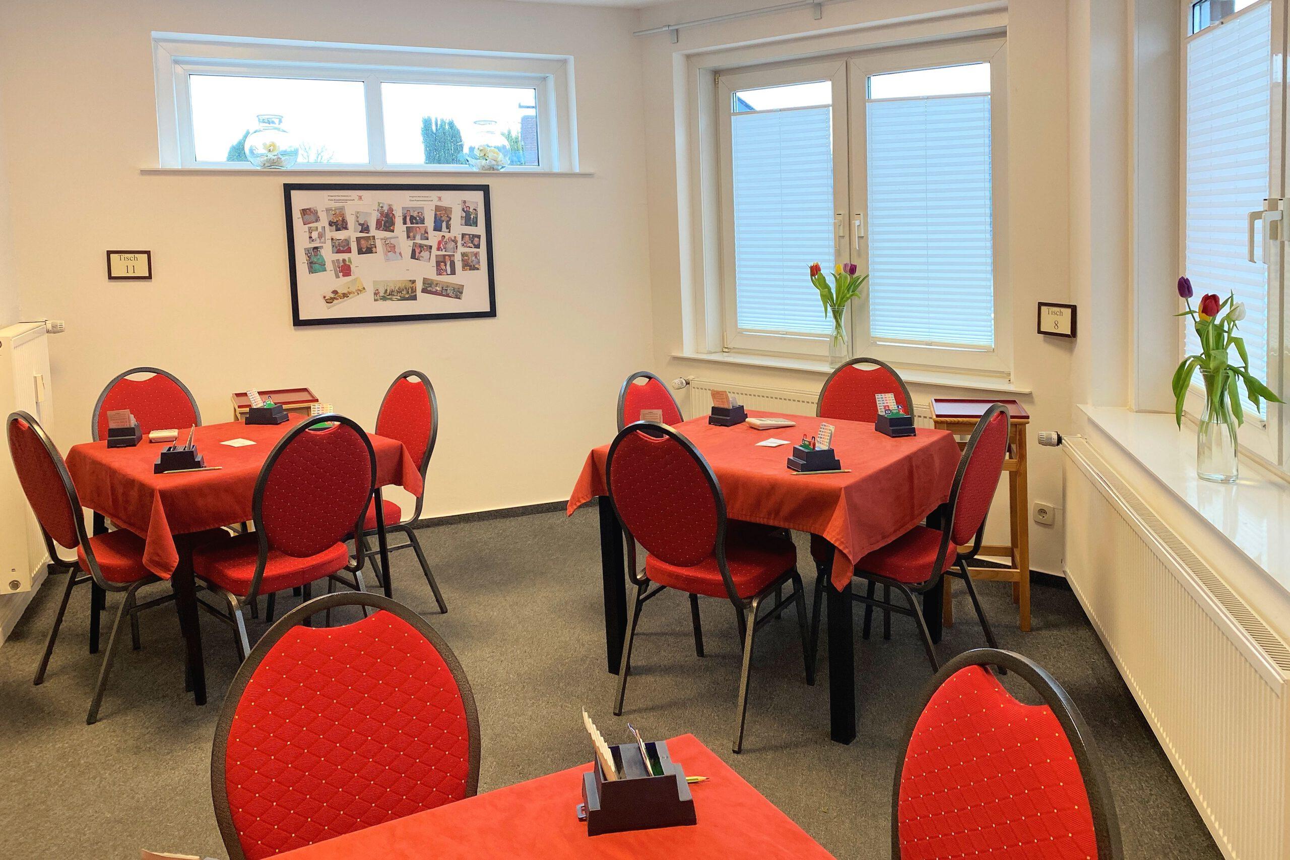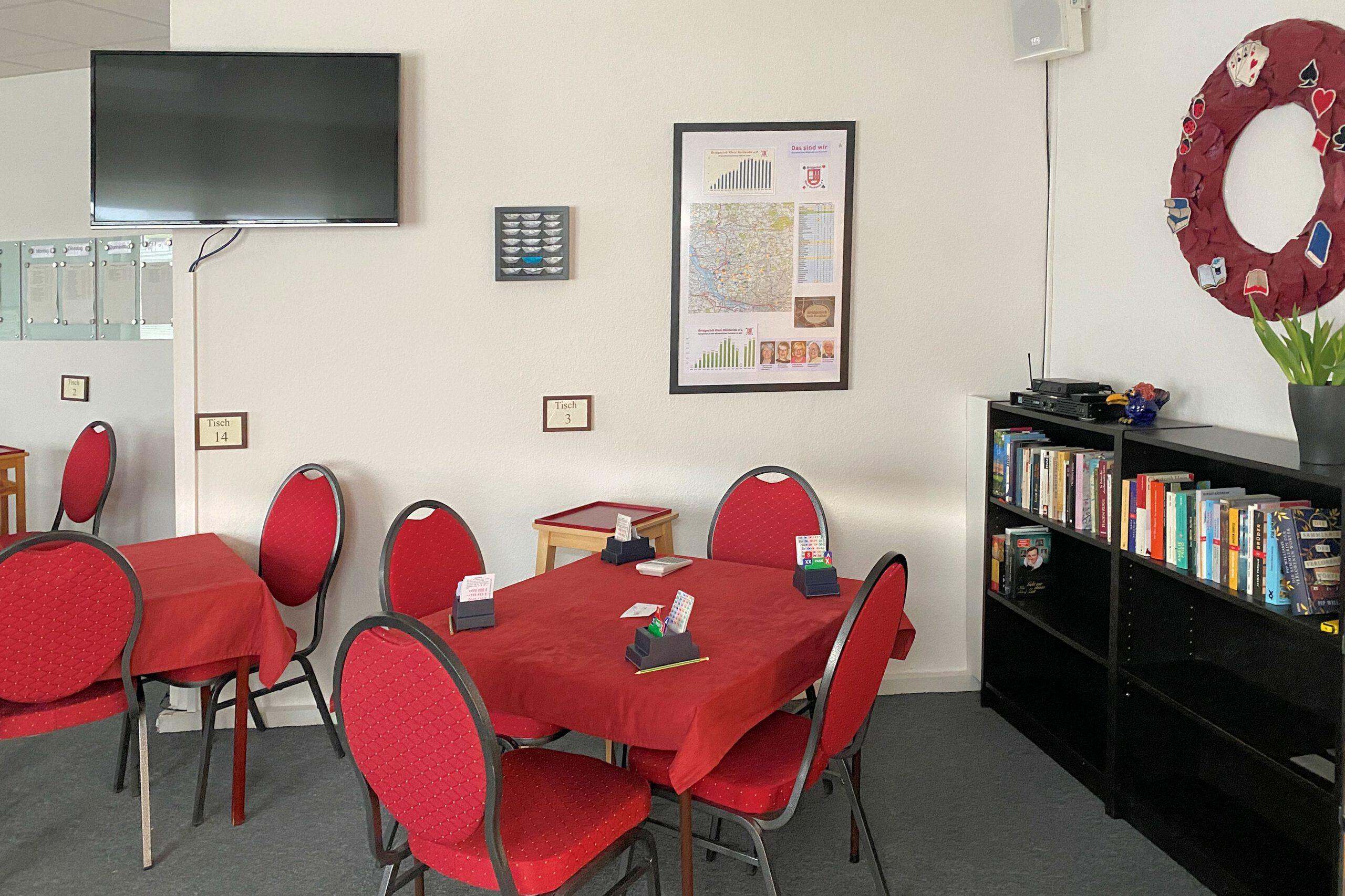 Ein großer Vorteil ist, dass die Bridgetische stehenbleiben können und dass der Club bezüglich der Getränke, Kuchen und Snacks Selbstversorger ist. Für Sauberkeit und Ordnung sorgen die Mitglieder.